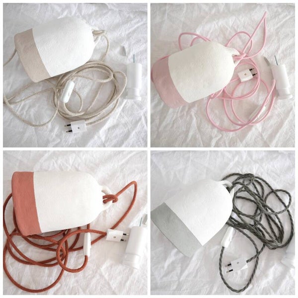 De rand van de lamp is voorzien van een passende tint bij het snoer, waardoor een speels en warm effect ontstaat.