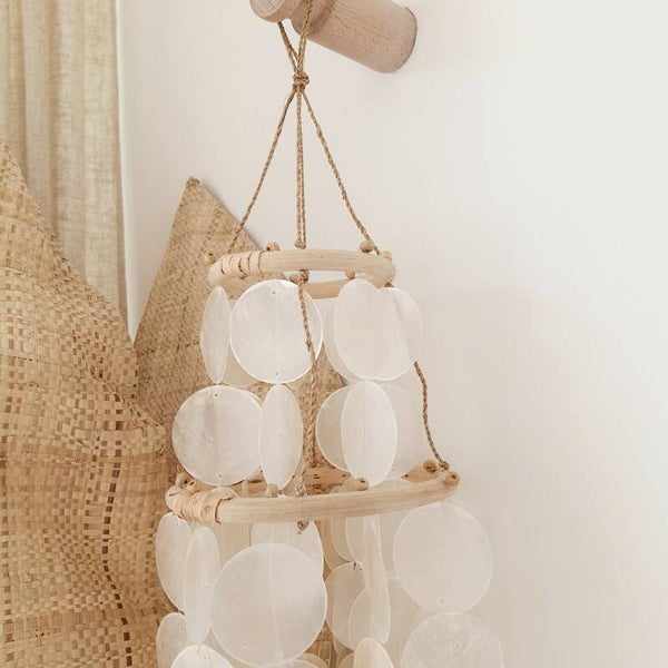 Prachtige mobiel gemaakt met naturel capiz schelpen voor de echte bohemian vibe.