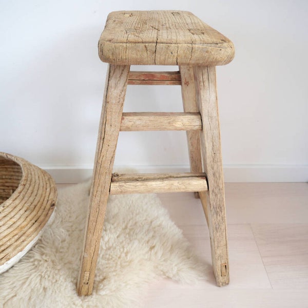 Als je op zoek bent naar handgemaakt, dan is deze kruk echt prachtig. Het hout is in de loop der tijd mooi rond gesleten.