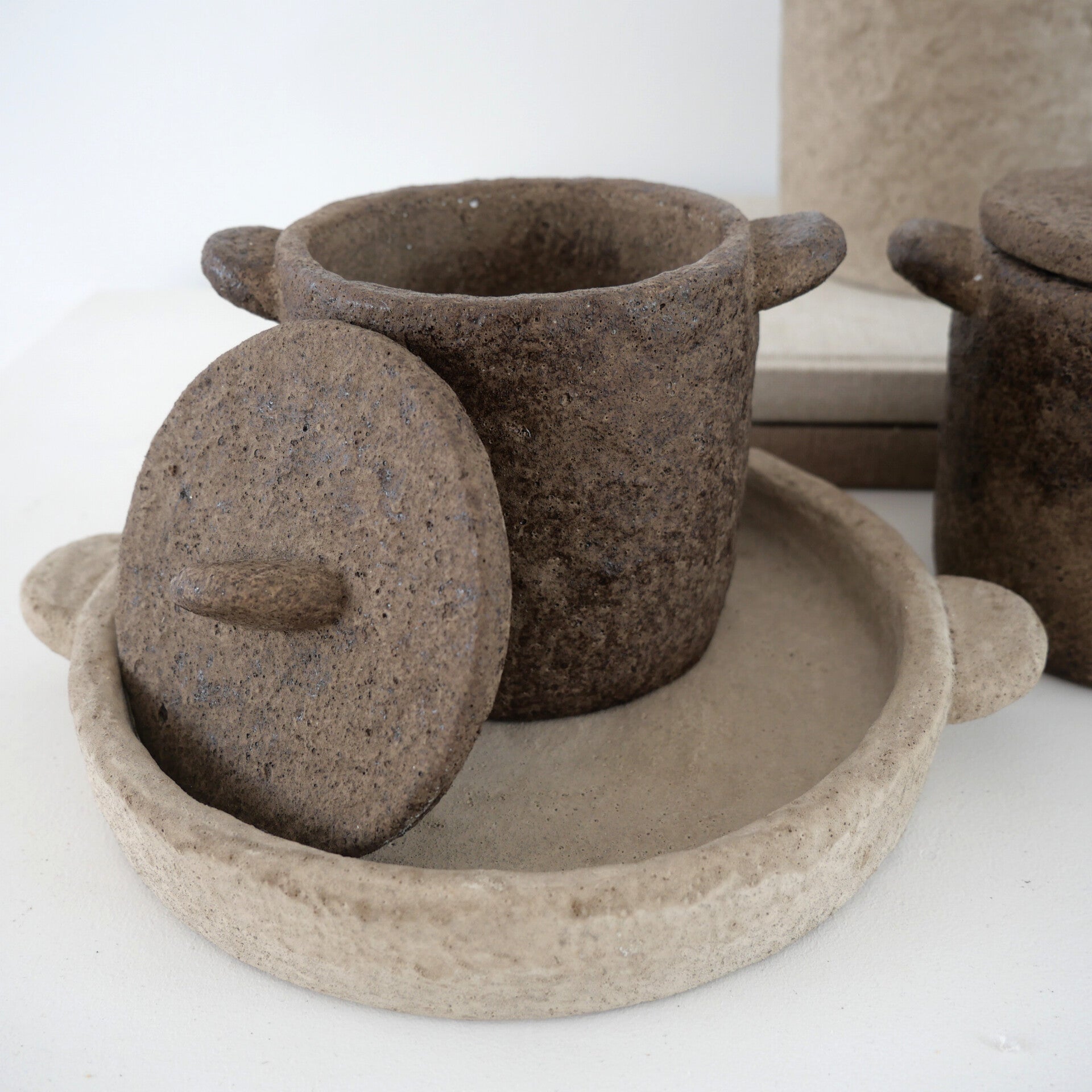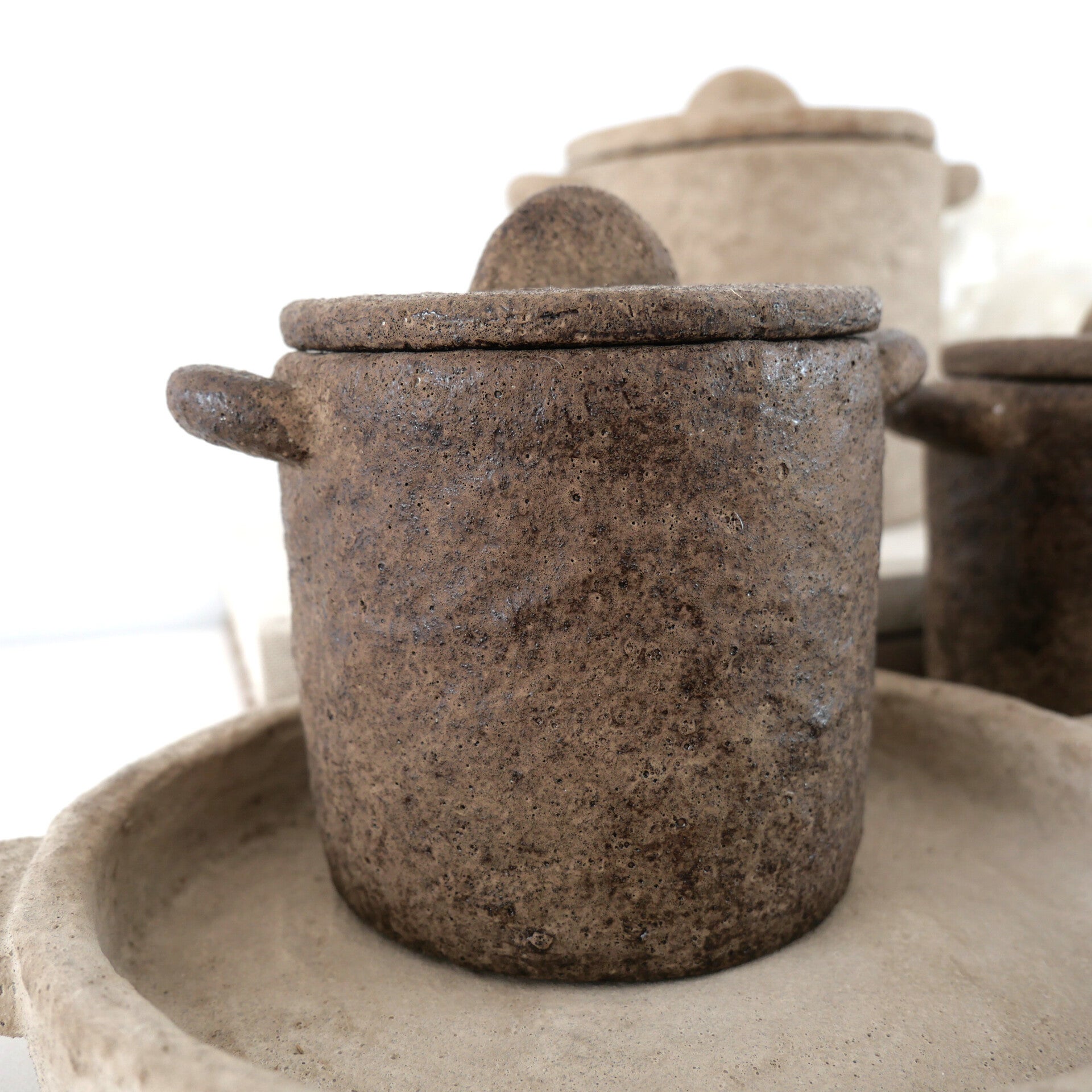 Breng rust en karakter in je keuken of op je planken met deze handgemaakte gipsen potten in een tijdloze Japandi steengoedlook.