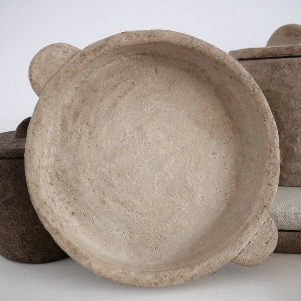 Deze rustieke potten met deksel zien er misschien uit als traditioneel steengoed, maar ze zijn eigenlijk gemaakt van handgevormd gips - waardoor ze dezelfde aardse charme hebben zonder het gewicht of de kwetsbaarheid van keramiek.