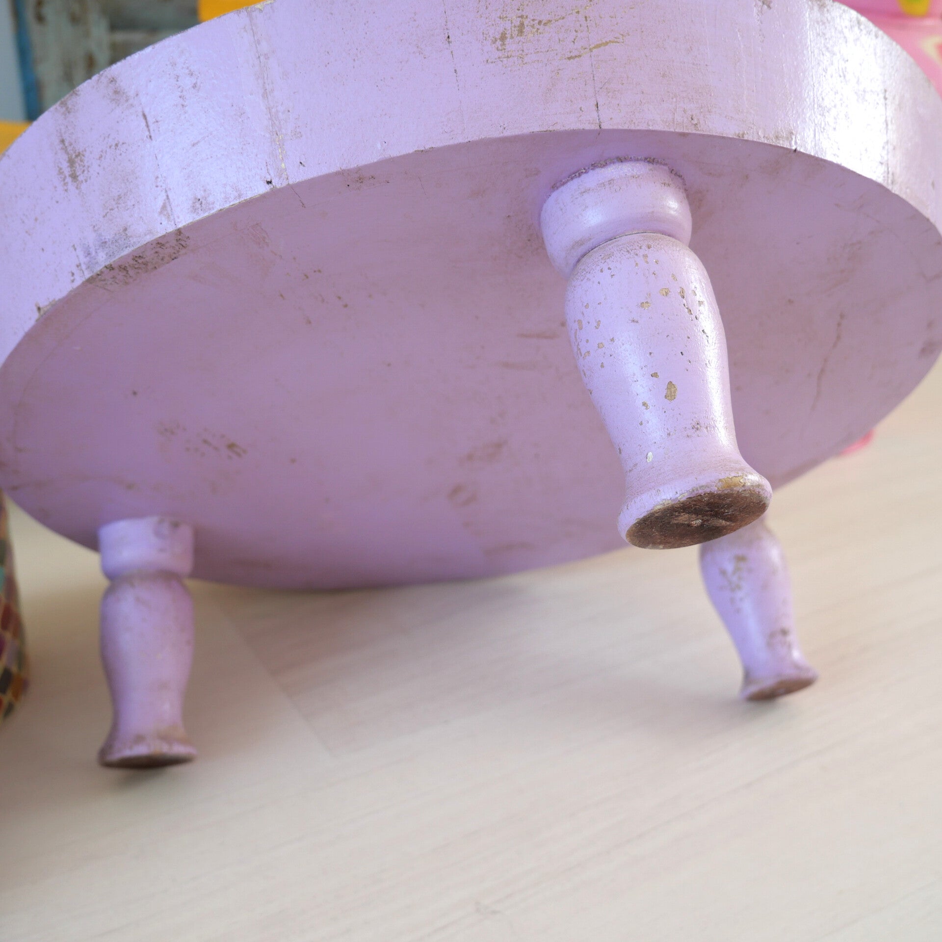 Geschilderd in lilapaars met geschuurde, rustieke afwerking